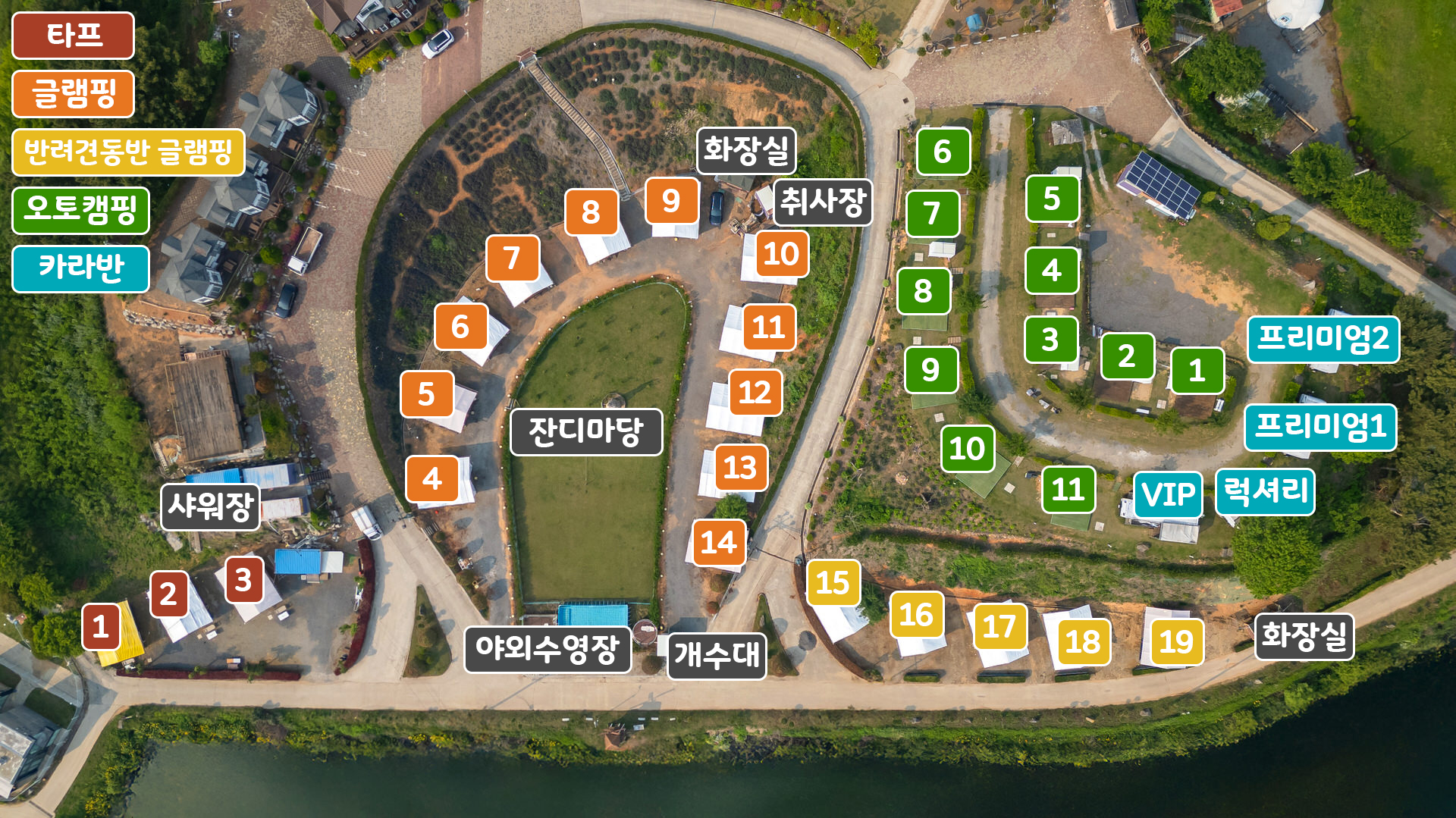 태안 비비아트글램핑 배치도 안내입니다.